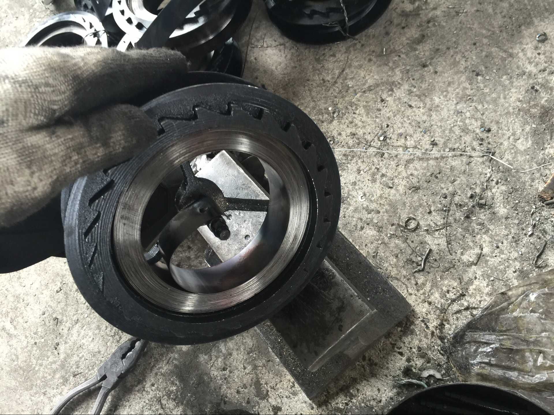 圖片展示的是纏繞好鋼絲繩的防墜器齒輪。