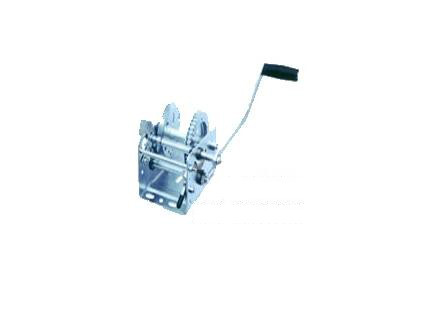 手動絞盤又稱手搖絞車或手搖絞盤,與電動絞車(電動卷揚機,可分為建筑卷揚機和工業卷揚機)相對而存在。它是一種機械用具,通過用手搖動絞車卷筒來拉動貨物。由齒輪驅動的絞車鋼絲繩卷筒通過轉動繞在它上面的鋼絲繩來拉動貨物。輕便和牢固,電鍍,壓制鋼結構,鋼纜通過兩個內定的叉頭拉動滑輪推進的單元。這些叉頭在絞盤向前模式的時候拉動纜線,同時也是一個自動的剎車系統。叉頭在抓力增加的時候會自動鎖住。手動絞盤還能夠用于提升(提升力為拉脫力的65%左右,既具有接近3倍的安全系數,為手動起重機械中罕見的產品之一,另一類為永磁吸盤)。